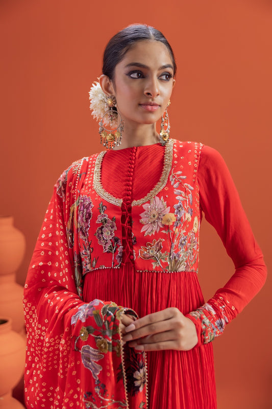 Rangmanch Bandhani Jacket Anarkali Set
