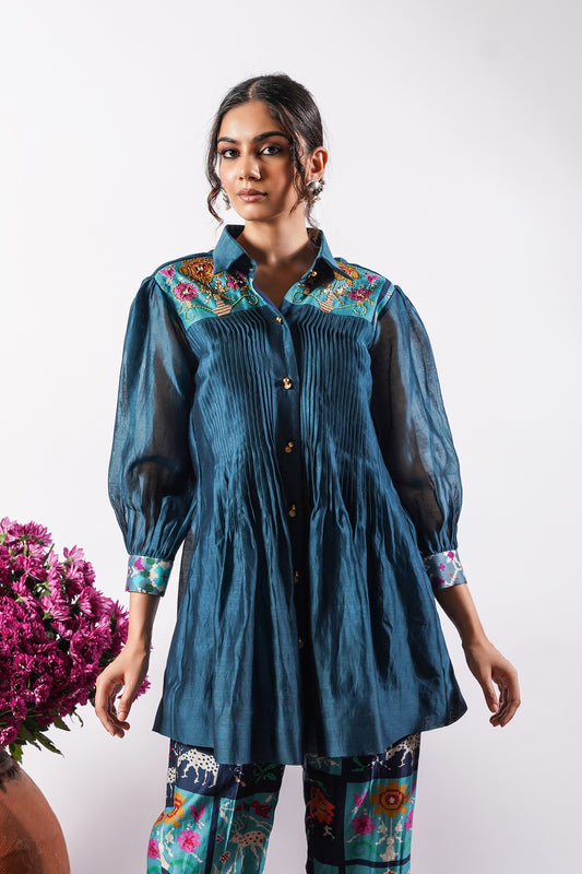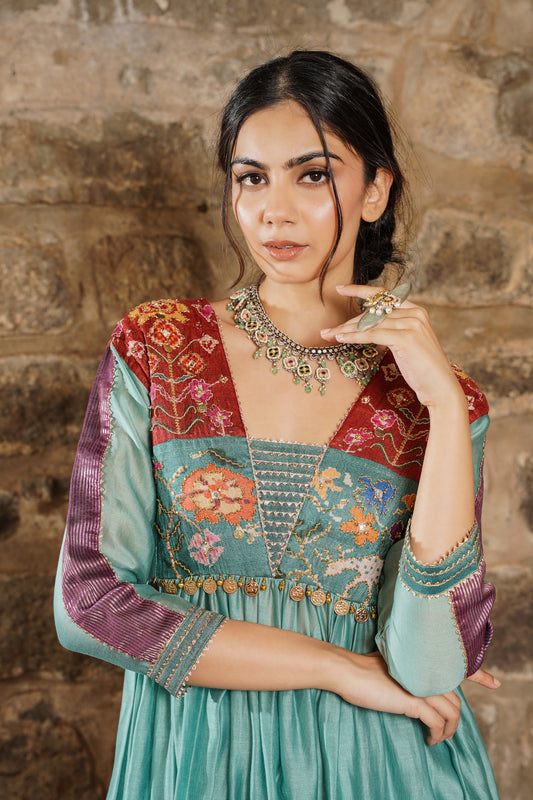 Aarzoo- Midnight Blue Silk Embroidered Anarkali Set