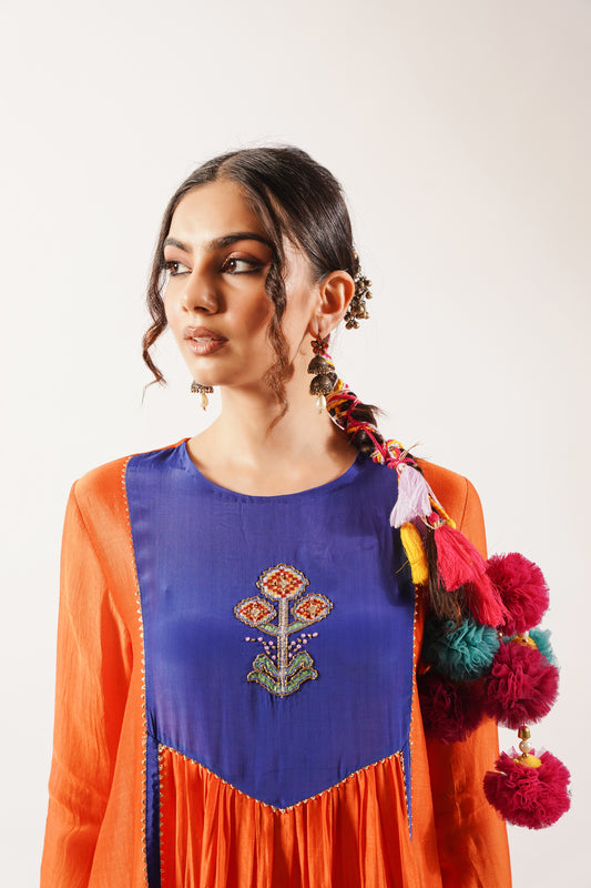 Rang-E-Noor- citrus orange ChandHeri kurti set