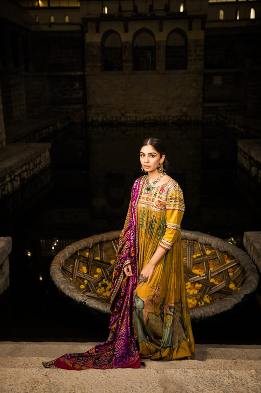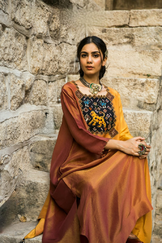 Rang-E-Noor- sunshine yellow Chanderi kurti set