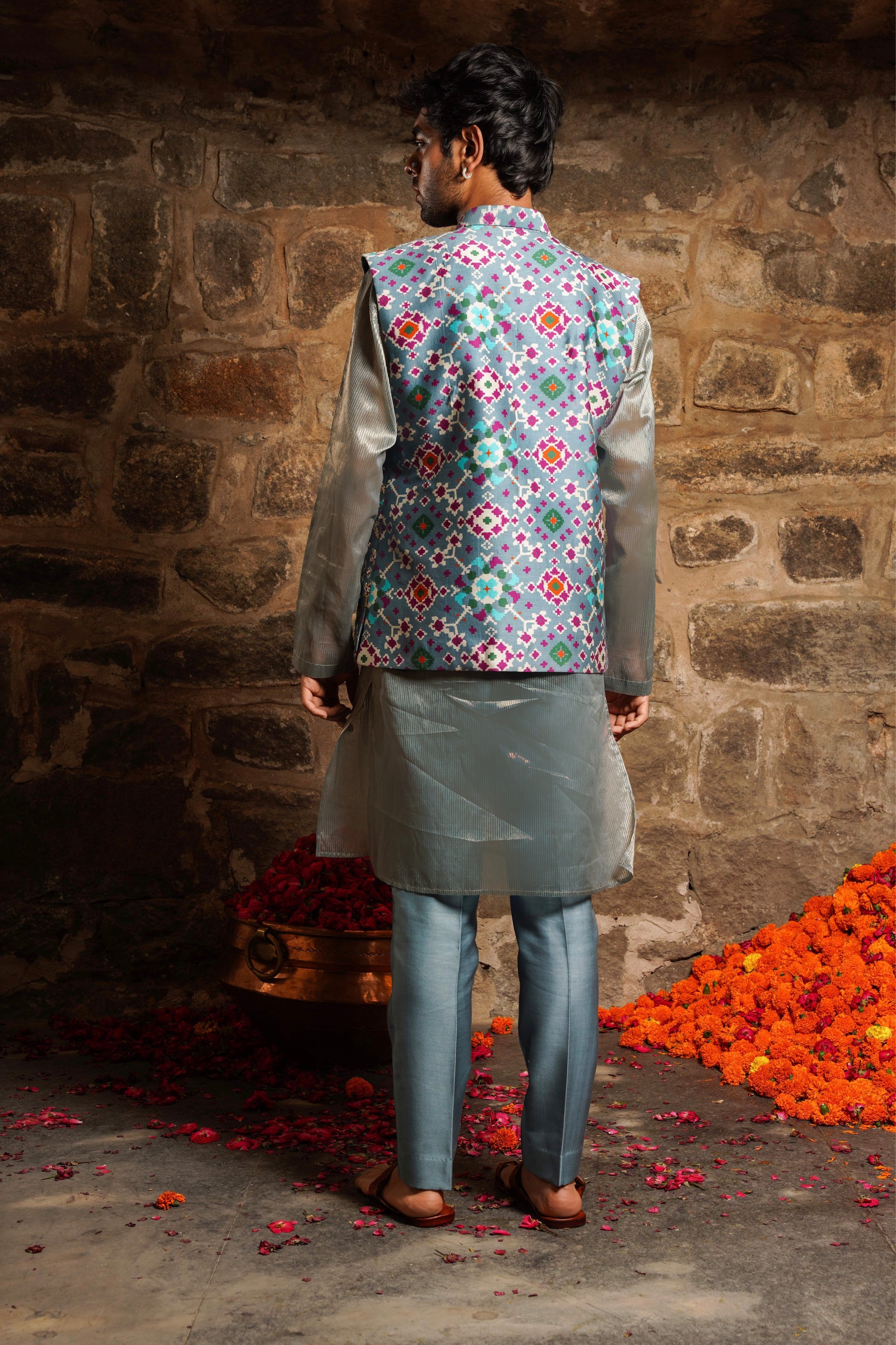 Featuring pearly mist green kurta set, the epitome of sartorial refinement for cultural festivities and formal gatherings. This ensemble stands as a testment to the enduring allure of classic fashion with a modern twist. This attire is perfect for festive celebrations.